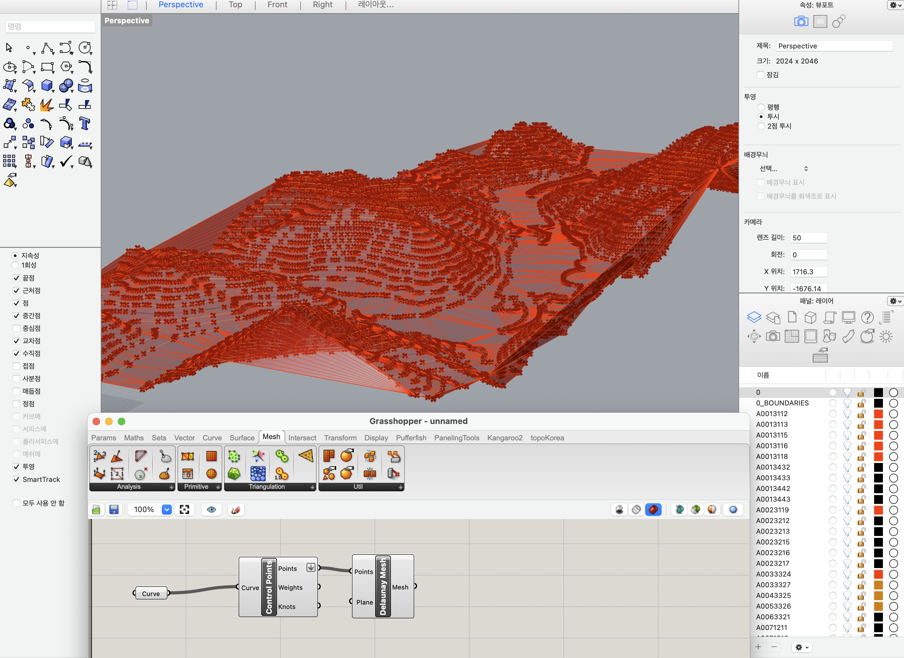 수치지형도, 컨투어 라인으로 대지 모델링 그래스호퍼